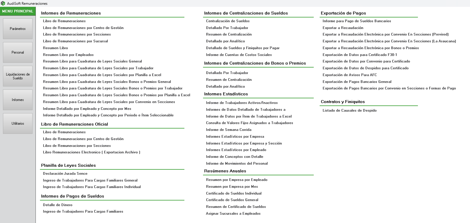 ¶ InformesEste este menú estarán todos los informes que puede emitir el sistema con la información de sus trabajadores. |