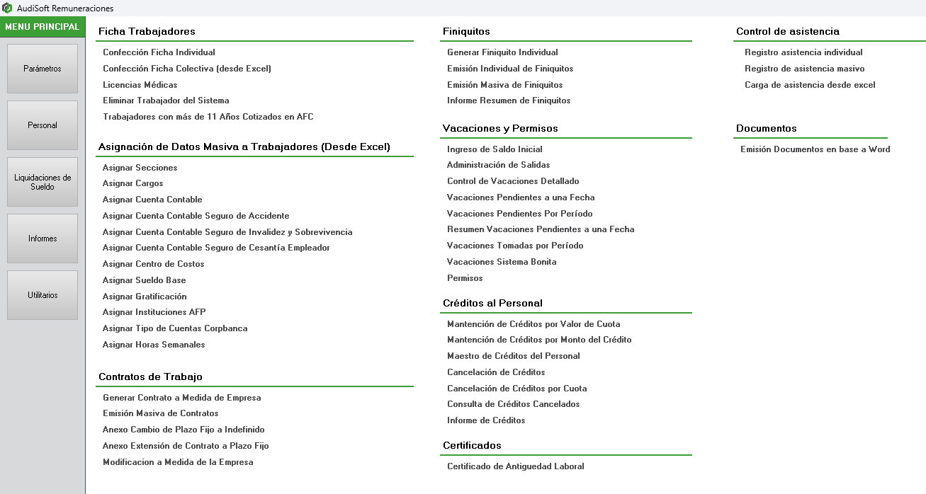 ¶ PersonalEn estos menús es donde comienza el uso del sistema de remuneraciones ingresando a su personal y todas las características que afectan y/o tienen relación con el ciclo de los trabajadores en la empresa. |