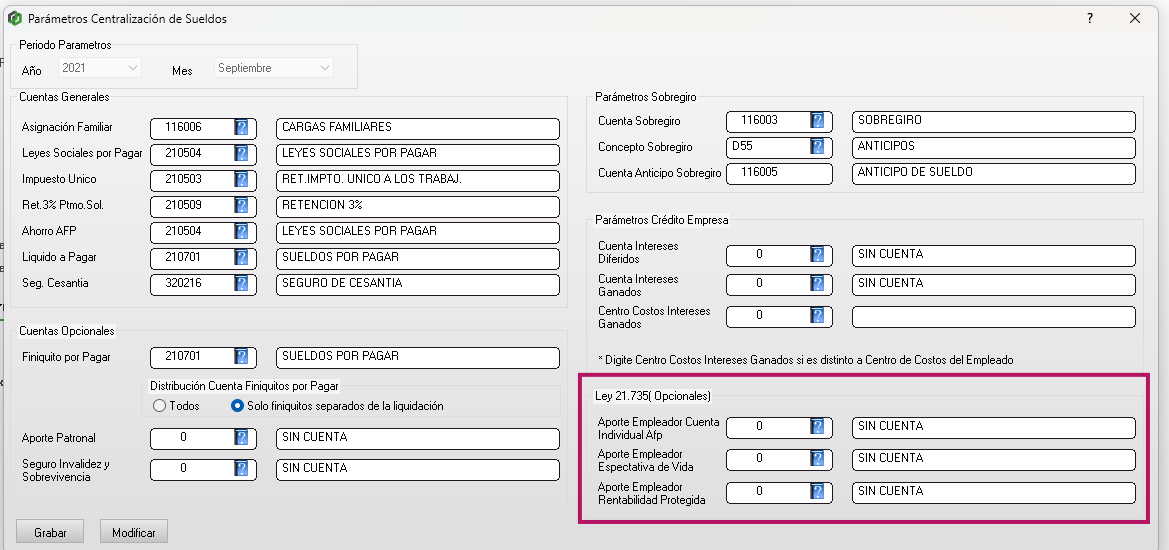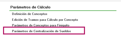 Seleccionar la opción: “Parametros de Centralización de Sueldos”
