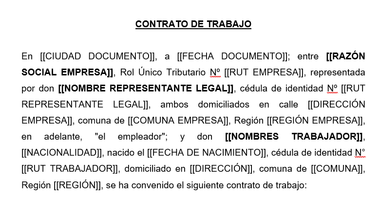 Para la construcción del archivo base tendrá disponible los siguientes campos, los verá que están construidos en este formato [[ …. ]] y deben usarse de la misma manera en el documento para que el sistema los pueda identificar y reemplazar por la información que desea.